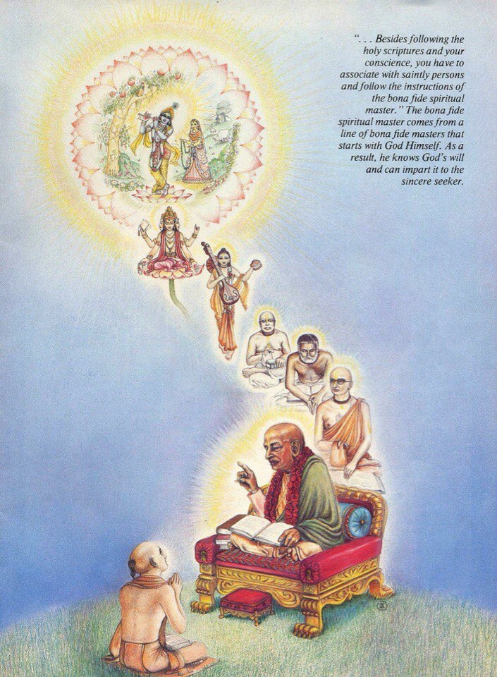 Я вручаю себя Шримати Радхике, безукоризненно прекрасной, как цветок лотоса. Она носит синие одежды. Ее лицо, подобное полной луне, обрамляют необыкновенно красивые черные волосы. Ее очаровательные глаза всегда подвижны, как две трясогузки. На груди у Нее сияет жемчужное ожерелье. Вечно юная, Она — самая дорогая возлюбленная сына Махараджи Нанды.